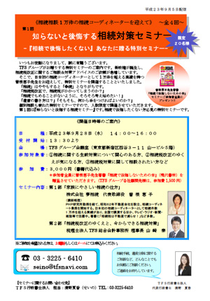 そこで、TFSグループといたしましても、TFS行政書士法人(清野夏香・行政書士)が主体となって、相続対策セミナーを開催することとなりました。
