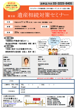 毎月、相続専門家による「相続対策セミナー」を開催していますが、毎回すぐに満席のお申し込みをいただくことからも、贈与も含めた生前の相続対策等に対する関心の高さが伺われます。