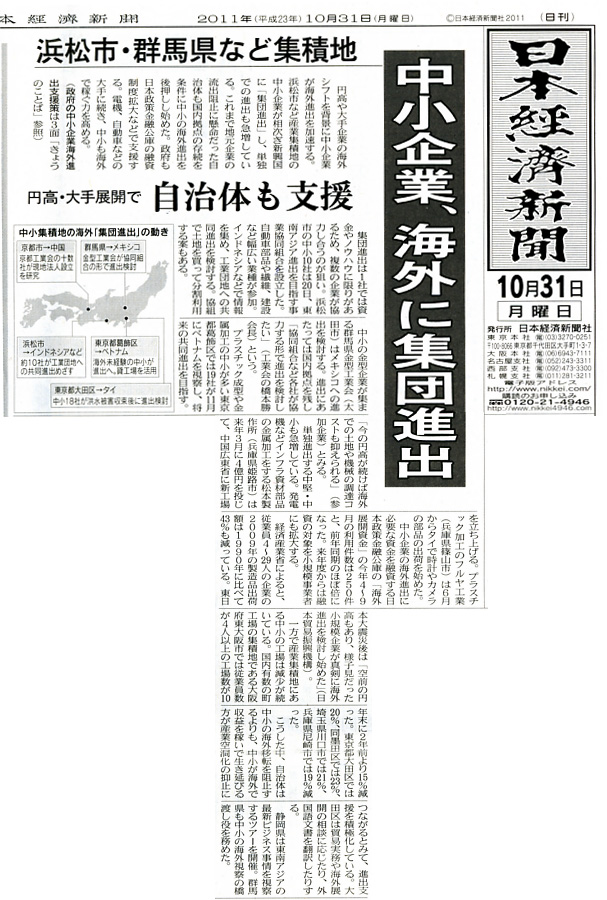 「中小企業の海外進出」を、地方自治体や政府が後押しをし始めたと報じられていたからです。