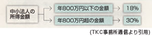 資本金1億円以下の中小法人に関しては、年800万円以下の所得に対する税率の軽減措置(22%→18%)が施されています。