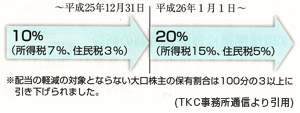 上場株式の配当や譲渡所得にかかる軽減税率が、現在20%→10%(所得税7%+住民税3%)に軽減されていますが、その適用期限が、平成25年12月31日まで延長されました。
