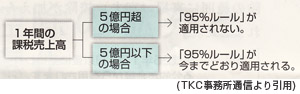 そのような趣旨から、「95%ルール」の対象者を、1年間の課税売上高が5億円以下の事業者に限定することと見直されたのです。
