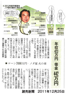 昭和62年以来、お金がなく慎ましい選挙を続け、落選中は毎日マクドナルドを食べて、まさに自らは身を削りながら耐えてきた野田首相。私達後輩は、その生き様を見てきているだけに、まずは国会全体として身を切る努力を断行して欲しい…機会あるごとに進言し続けたいと思っています。