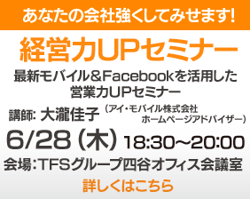 講師には、外国人CEOで有名なデービット・リーブレック氏率いるアイ・モバイル鰍フHPアドバイザーとして、全国の中小企業のアドバイスや講演に飛び回っておられる、大瀧佳子氏にお越しいただきます。