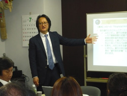 第2部の講師は、TFSグループ・フィナンシャルアドバイザーである林克至氏。(株)みずほコーポレート銀行、メリルリンチ日本証券(株)で、多くの企業の間接金融のみならず直接金融にも携わってきた経験から、くれぐれも「金融機関VS経営者との認識のズレ」がないように、具体的な事例を示しながらの解説。