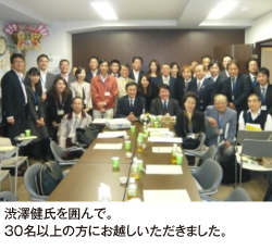 10月31日、渋沢栄一翁を語っていただいたのは、玄孫(孫の孫)・渋澤健先生。まさに栄一翁を語るに、この方に勝る方はいないゲストにお越しいただきました。懇親会にもご参加いただき、大変に盛り上がりました。